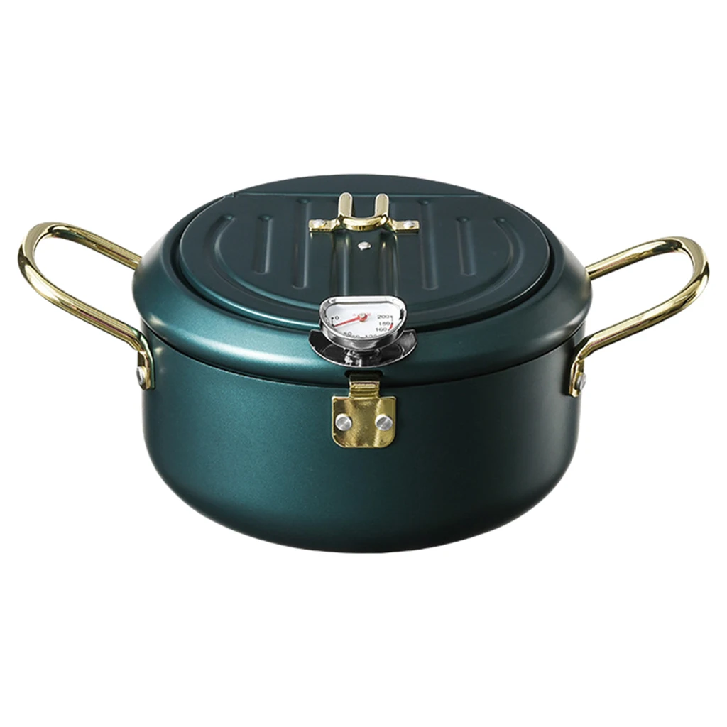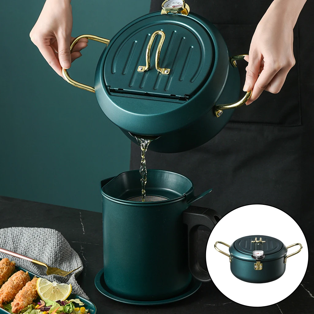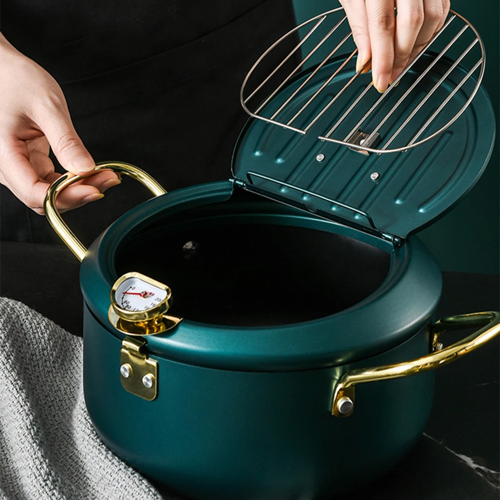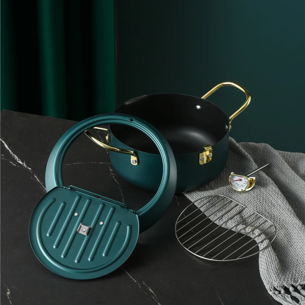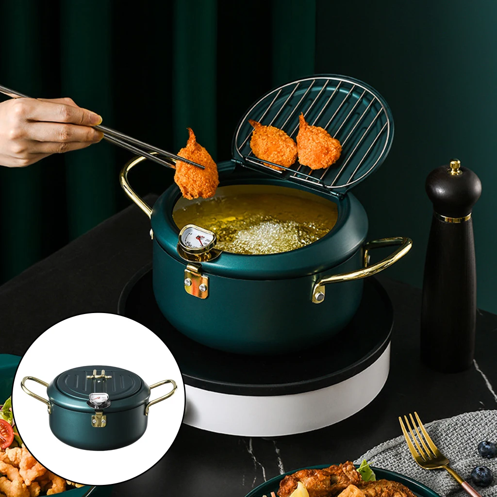 Kitchen Deep Fryer Tempura Fryer Pan with a lid, made of stainless steel. Uncoated surface, more healthy and safe.