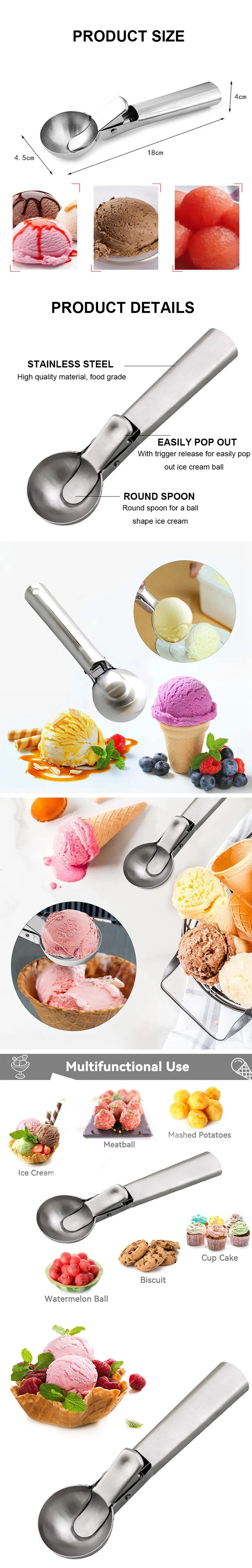 ✔Easy release: The spherical spoon head on the ice cream scoop has a trigger, which is specially used to make a perfect round spoon, while pressing the trigger without sticking can easily pop up without sticking to the spoon.